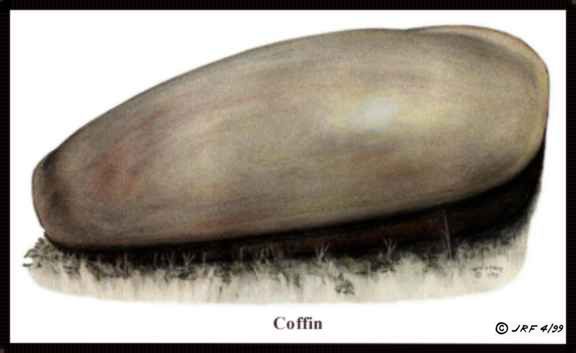 Well, our coach asked for volunteers to go get it. So about four of us began running down the slope. As we approached the ball, we were startled by what appeared to be a very gray-brown weathered coffin-type object sitting near it. We noticed the coffin had four legs, but we also knew well that it didn’t belong there. With a few comments about what strange enclosure might be, we grabbed the football, ran back up the slope and gave it to our coach, who for some reason really didn’t want to take a look at what we saw. With that we continued our practice and gradually forgot the entire short incident. I don’t believe we mentioned a word about it after that.