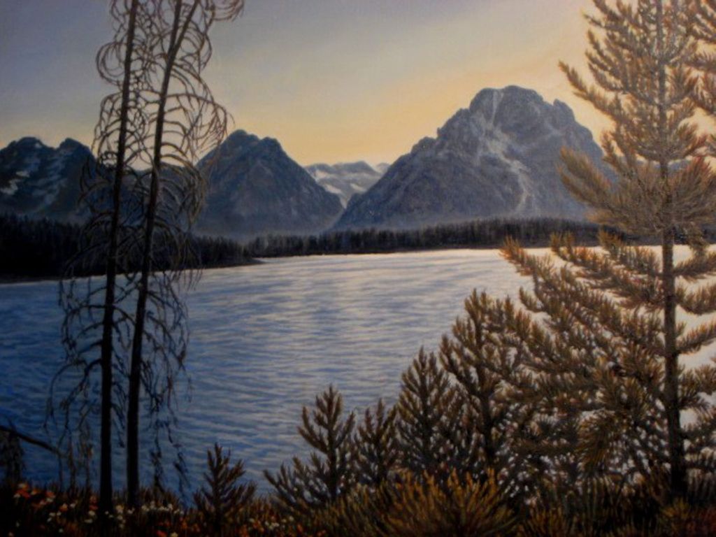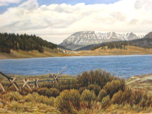 Looking west… A perfect (excellent) view of Bog Lake and Boedecker Butte north of Dubois, Wyoming. The butte was named after a friend’s father or grandfather. The friend was Dot Lewis, the cook at Redrock Ranch which was located a mile or so east of Dubois. I gave several paintings of Bog Lake and the Teton Mountains to her kids and grandkids. …UFO encounters occurred most everywhere we went. However most encounters occurred subtly and ended subtly, so subtly that most people did not remember. We were hypnotized or mentally programed so we couldn’t remember. However, there were a few times when the others who were with me remembered that the UFOs showed up previously when they were with me; they began believing I was somehow connected to the strange happenings.