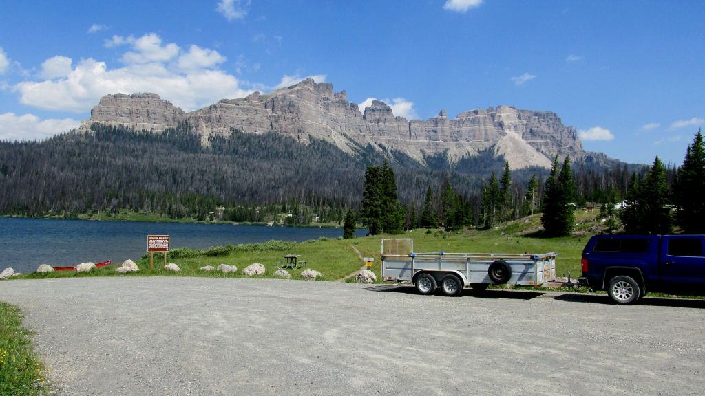 Looking northwest at The Rams Horn Mountain from the northeast edge of Dubois… We experienced several encounters in and around Dubois. Horse Creek is in the trees left to right. Other encounters occurred up the Horse Creek road to and at Bog Lake, and on up the road as far as the WiggensForkCreek confluence and campground area.