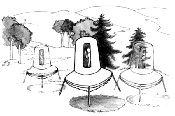 The men, who seemed to be completely natural humans most often dressed in street cloths, of course did not hover and move above the ground. We most often first saw them and heard them as they simply approached us walking and talking. However, I recall a few of them first came walking out of what seemed to be a distorted atmosphere that was somewhat clear, but not always completely clear. The distorted atmosphere seemed to fade away as they approached us. The volume of atmosphere was stationary and stayed behind the men as they walked toward us. After the men talked for a short period, the distortion was gone. The atmosphere then seemed to be completely normal. The same phenomenon occurred when we encountered the beings, however we encountered many of the beings inside the crafts. They most often, if not always, piloted the craft.