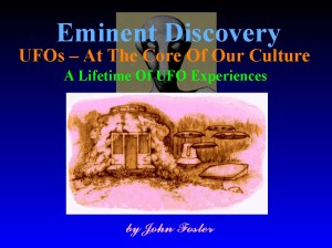 This occurred at a Boy Scout camp just before we boys and the disc-shaped crafts with headlights played a game of tag in an adjacent field. The boys got crazy/excited. However, I can’t recall for sure if any of them were knocked to the ground. After I watched this for a time, I tried to chase a disc, but the disc turned and moved very slowly up in front of me, the voice espousing one of the usual routine calm messages. We all then began running, completely out of control toward our campsite…south of the Platte River south of Fremont, Nebraska, August 1949. Read the rest of the story in Eminent Discovery Volume 1.